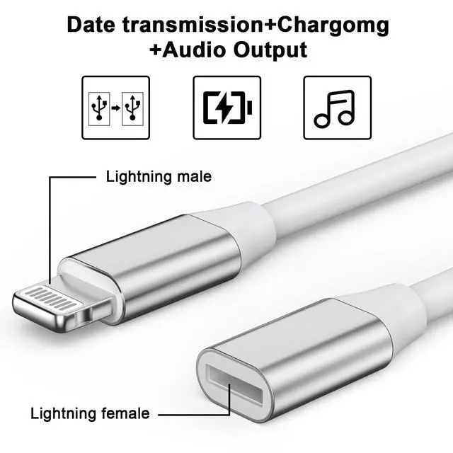 Lightning Extension Cable Connector Adapter for iPhone iPad. Short Male to Female iOS Extender Cord Dongle Compatbile with Most iPhone Cases Made Transfer Video Audio Data Music Picture Photo Power Support Charging Calling Music. (3.5 inch / 9 CM) Compatible with female iOS devices for iPhone 14 iPhone 14 Pro Max 14 Pro for iPhone 13 iPhone 13 Pro Max iPhone 13 Pro iPhone 12 Pro Max iPhone 12 Pro iPhone 12 mini for iPhone 11 Pro iPhone 11 Pro Max iPhone 11 for iPhone XS Max XR iPhone X iPhone 8 Plus iPhone 8 iPhone 7 Plus iPhone 7 iPhone 6S Plus 6S 6 SE iPhone 5S SE 5C 5 for iPad mini 4 iPhone 3 2 for iPod touch 7 6 5 Features & Function Female to male iOS phone extension docking cable cord adapter connector. Transfer Video Audio Data Music Picture Photo Power Charging for your devices Compatible for iOS system and for Lightning devices for Personal Thermal Imager for Home for Sony Speakers for DJI OSMO POCKET for Earphone for Speakers and Digital Speaker,Headphones for Dock for Lightning Charge cable for car with iOS phone male port Notice 1. You should connect the charge adapter before your iphone devices. (male before female) 2. If you connect it correctly and it didn't work, please Pull out the female end and insert it again What You Get Male to female extender docking station connector3.5 INCH/9 CM) 12 months of warranty service,friendly and fastly customer service.