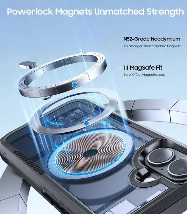 [Ultra Strong Magnetic & Perfect Alignment] Perfectly aligned with magnetic ring on your i phone 16 case! Rock-solid unshakable magnetic hold, stays put whether jogging, driving or daily use. Compatible with MagSafe chargers, car mounts, wallets, and more. This iphone16 case embedded with 20 N52-grade magnets. Without case removal, enjoy effortless use in any daily scenario.