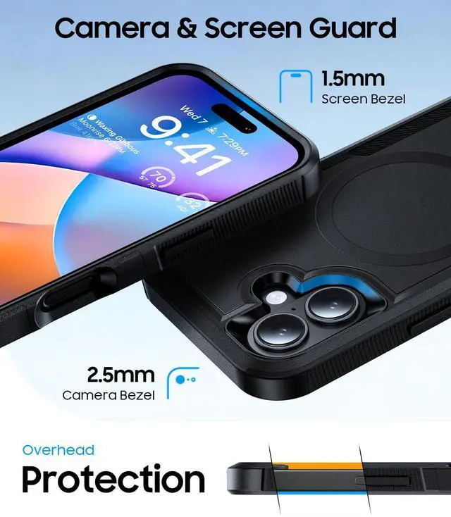 [Dual-layer Protective Case] Updated two-layer heavy duty protection. This phone case for iPhone 16 providing 360° all-around like fortress-strong rugged defense. With soft silicone inner and hard PC outer, achieve military-grade drop protection. Passed over 3000+ professional drop tests and MIL-STD-810H certified. The shock-absorbing silicone inner layer cushions drops and bumps, while the tough PC outer shell guards against scratches and abrasions in your daily use.