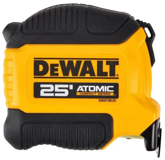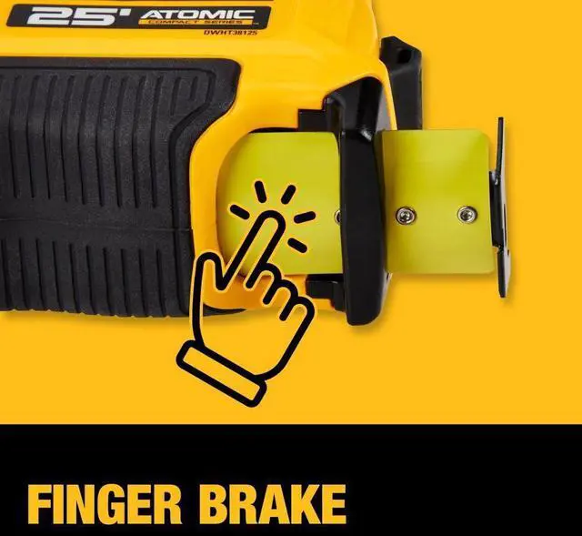 The ATOMIC COMPACT SERIES Tape Measure is Where Size Meets Power. Our new line of ATOMIC COMPACT SERIES Tape Measures delivers on durability and reach, with a compact design that gives you more control when measuring. Our first integrated finger brake gives you better blade control to get the job done quicker and more efficiently. The 13 ft. of max reach* ensures you can get the job done on your own, and the fractional blade graphics help make measurements quick and easy.