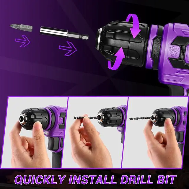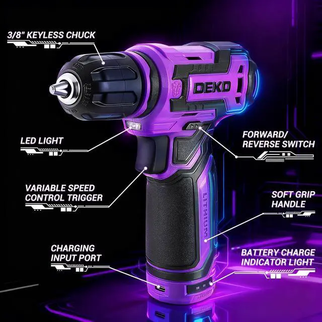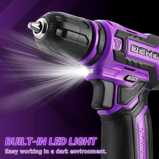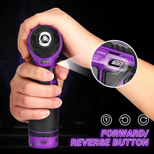 The cordless drill is equipped with a user-friendly switch that easily switches between forward and reverse rotation by simply moving the lever to the left or right.