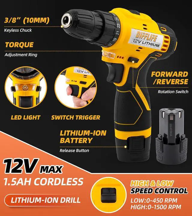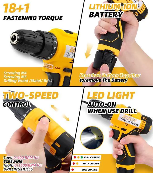 Powerful Motor: This 12V drill driver tool kit features a robust motor for effortless drilling and driving into various materials.