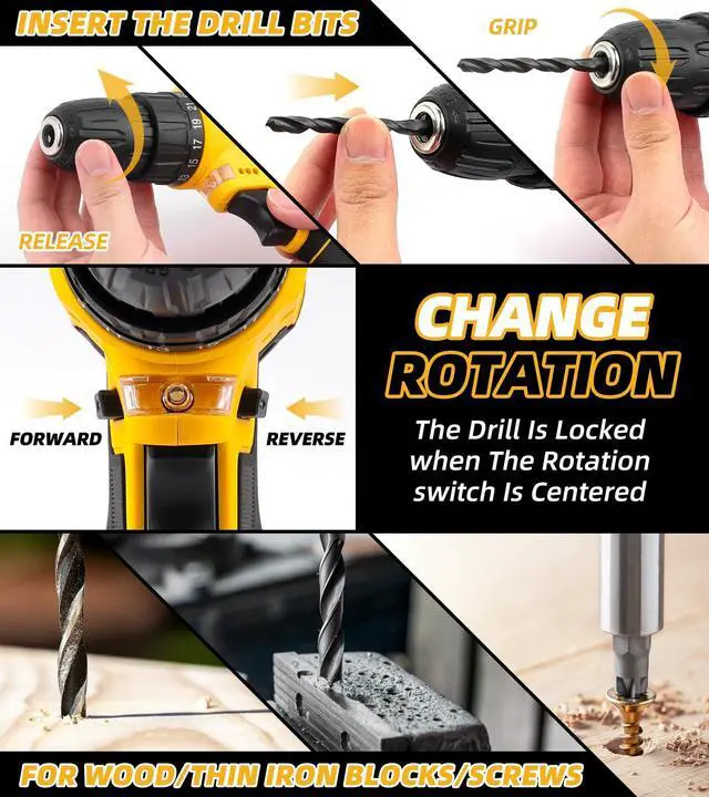 12V Drill Driver Power Tool Combo Kits with Cordless Drill, Professional Household Home Tool Kit Set, DIY Hand Tool Kits for Garden Office House Repair Yellow