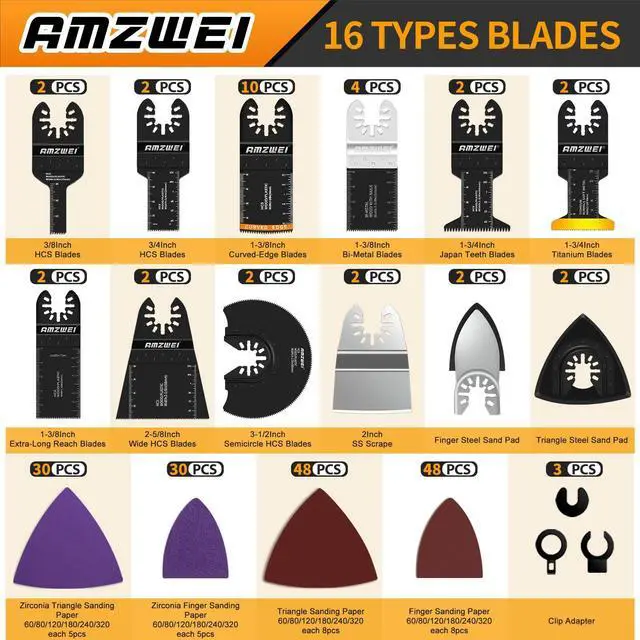 190PCS OSCILLATING TOOL BLADES SET PACKAGE LIST