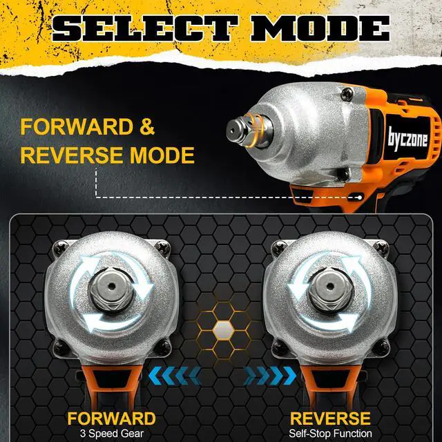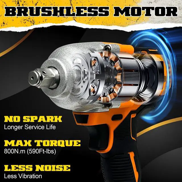 EFFICIENT BRUSHLESS-MOTOR 1/2 inch Impact Wrench boasts a powerful and operational longevity Brushless-Motor, ensures efficiency and long-lasting performance. Compared with brushed motors, brushless motors do not generate sparks or smoke during operation, and their service life is 1.66 times longer than that of brushed motors. Brushless motors are the best choice for professionals.