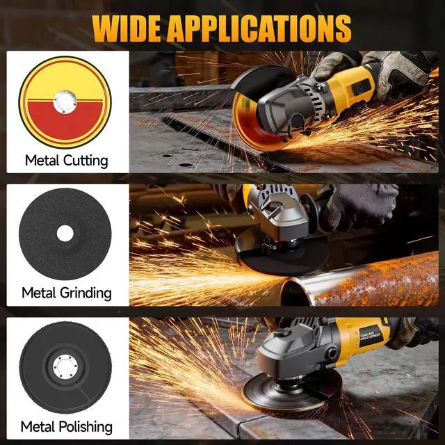 Compact Ergonomic Grip: The lightweight, compact body and ergonomic grip make this grinder tool easy to hold and control, especially for beginners and extended use. Supports 4-1/2" and 5" wheels with a 7/8" arbor. Ideal for home repairs, DIY projects, and small workshop applications, not intended for large-scale or heavy-duty jobs