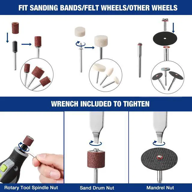 Mount wheels, discs or blades to use with your rotary tool.
