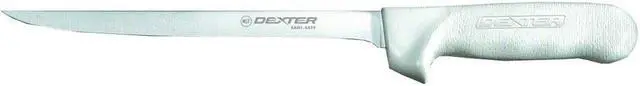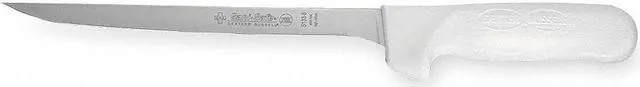 Fillet Knife, Knife Type Fillet Knife, Blade Material Steel, Handle Color White, Blade Type Honed, Overall Length 13 in, NSF Certified Yes, Handle Material Sanitary Polypropylene, Blade Length 8 in, Handle Length 5 in, Number of Implements 1, Finger Guard Included Yes. This item has been restricted from sale in the following state (s): []