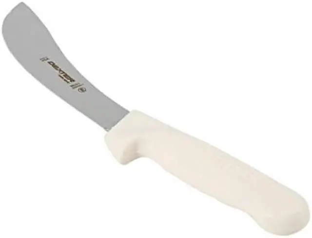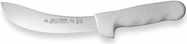 Butcher/Skinning Knife, Knife Type Skinning Knife, Blade Material Stainless Steel, Handle Color White, Blade Type Curved, Overall Length 11 in, NSF Certified Yes, Handle Material Sanitary Polypropylene, Blade Length 6 in, Handle Length 5 in, Number of Implements 1, Finger Guard Included Yes. This item has been restricted from sale in the following state (s): []