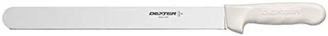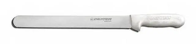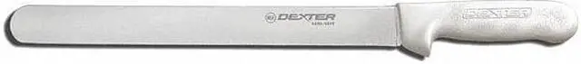 Chef/Utility Knife, Knife Type Slicer, Blade Material Steel, Handle Color White, Blade Type Straight, Overall Length 17 in, NSF Certified Yes, Handle Material Sanitary Polypropylene, Blade Length 12 in, Handle Length 5 in, Number of Implements 1, Finger Guard Included Yes. This item has been restricted from sale in the following state (s): []