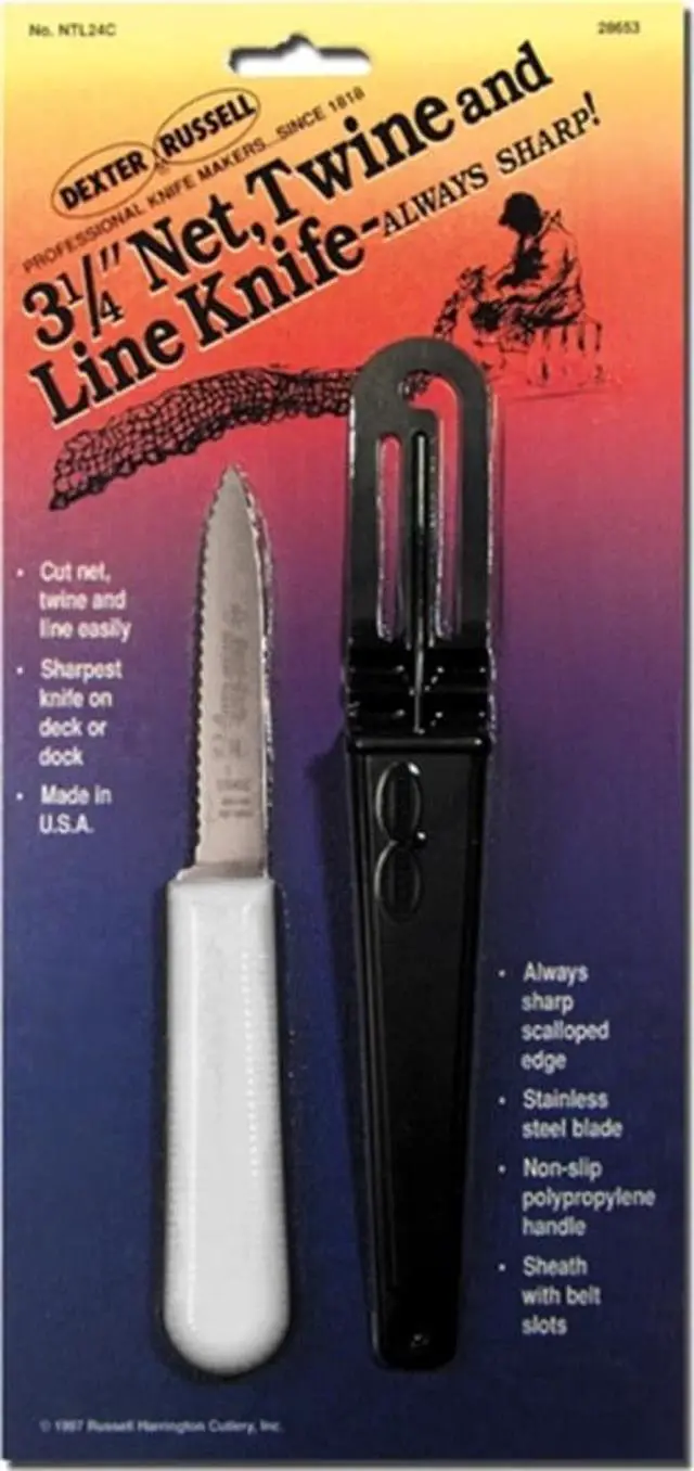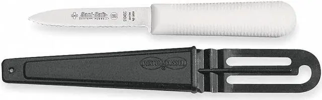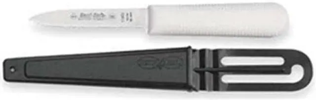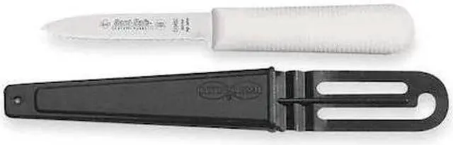 Seafood Knife, Knife Type Line Knife, Blade Material Steel, Handle Color White, Blade Type Honed, Includes Sheath, Overall Length 7 1/2 in, NSF Certified Yes, Handle Material Sanitary Polypropylene, Blade Length 3 1/4 in, Handle Length 4 in, Number of Implements 1, Finger Guard Included Yes. This item has been restricted from sale in the following state (s): []