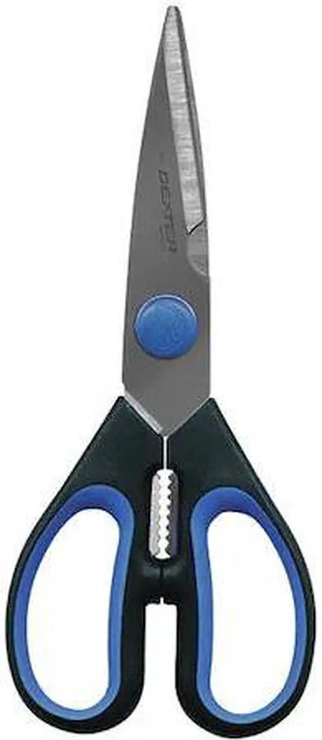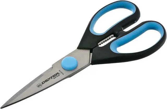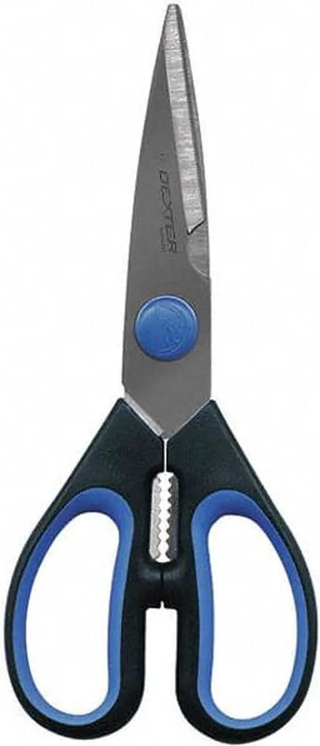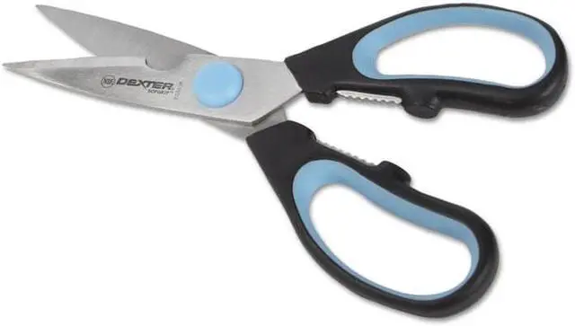 Poultry and Kitchen Shears, Handle Material Rubber, Handle Style Ergonomic, Handle Color Black/Blue, Overall Length 7 1/2 in, Blade Material Stainless Steel, NSF Certified Yes, Cutting Edge Knife, Left/Right Hand Ambidextrous, Product Type Poultry/Kitchen Shears, Adjustable No, FDA Compliant No. This item has been restricted from sale in the following state (s): []