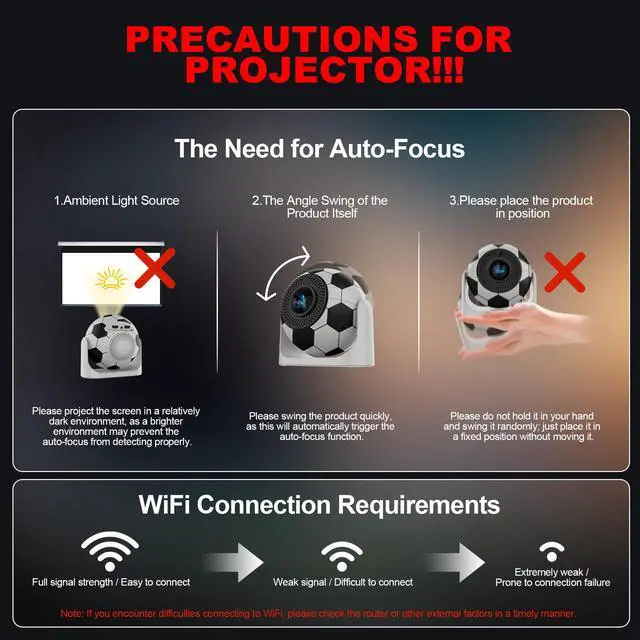 Design and Scenario Adaptation: With a portable mini design, it is suitable for multiple scenarios such as business, family, and camping, making it an ideal choice. 2. Performance and Operation: It supports smooth and compliant multi-task operations, paired with dual-band WiFi (2.4G+5G) and Bluetooth, enabling easy home screen mirroring and quick business presentations. 3. Compatibility and Picture Quality: Compatible with devices such as smartphones and TV sticks, it also supports 4K frame rate input, leaving room for future picture quality upgrades; the 180° rotatable lens plus automatic trapezoid correction design presents brighter and darker details morely. 4. After-Sales Support: The official provides compliant warranty, which can promptly resolve usage issues, ensuring worry-free purchase and use.