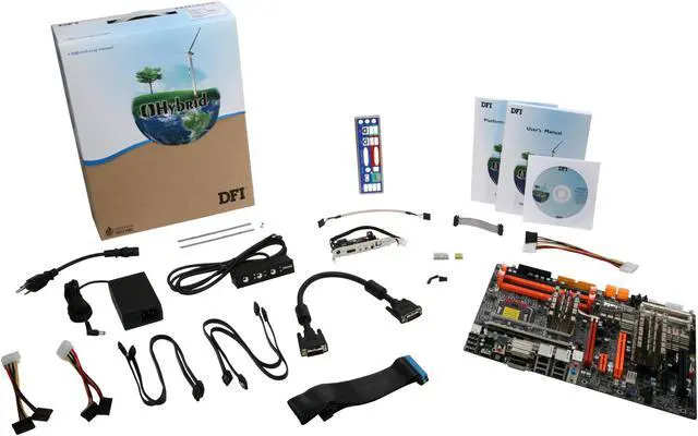 | Features | DFI Hybrid Platform H-PLUS-EA (I/O Expension ) - 1 Power port - 1 Power e-SATA (share with USB2.0 port) - 3 Channel audio - 1 Optical S/PDIF input port HB-F-BOX (Platform control panel) - 1 button for selecting Intel Platform to NVIDIA Platform - 1 button for selecting Audio mode in Auto or Fixed - 1 button for selecting Fixed Intel Platform or NVIDIA Platform Realtek 8366SB Giga Switching Controller Independent 60W power adapter for power supply 6 FAN connectors |