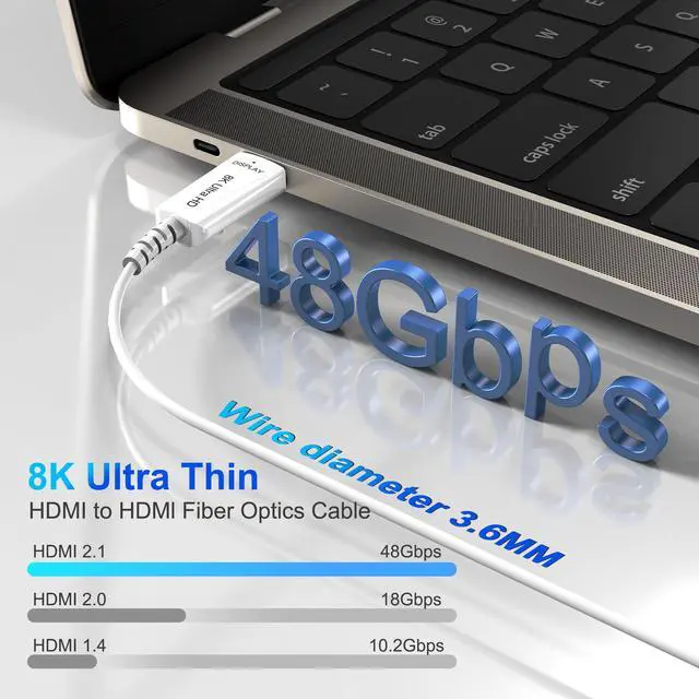 Extra Thin HDMI Cable : Using the most advanced fiber optic technology, the diameter of HDMI cable is only 0.14 inches (3.6mm). fiber optic hdmi cable have greater bandwidth and faster speed, less signal attenuation, thinner and lighter It's perfect for home and office renovation