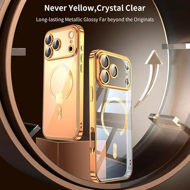 METALLIC GLOSSY MAGNETIC PHONE CASE:This for iPhone 17 Pro Max case features soft and shockproof metallic glossy bezel transparent backplane [never fades] keeping your phone looking new all the time