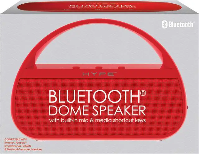 | Features | This bluetooth dome speaker is easily portable with built-in handled. The soft-touch finish provides a non-slip grip. Bluetooth compatibility allows for an easy wirless connection to smart phones or tablet while allows for answering calls when needed. stereo sound quality , built-in microphone, one-touch answer button, portable handle, media shortcuts keys, compayiblr with most bluetooth-enable devices, play time up to 3 hours, charge time up to 2.2 hours. |