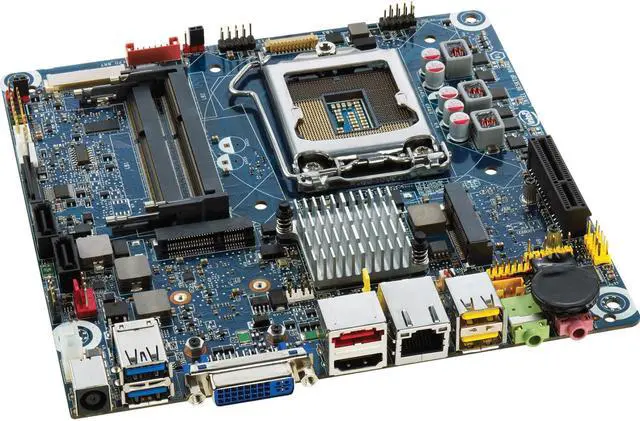 The Intel Desktop Board DH61AG powered by the 2nd generation Intel Core processors in the LGA1155 package offers Intel HD Graphics with best-in-class media processing features in an innovative low z-height, Thin Mini-ITX form factor. Fully compatible with low height components such as SO-DIMMs and Full and half length PCI Express mini-cards, the DH61AG also supports premium features such as SuperSpeed USB3, eSATA, and Hi Current/Fast charging USB 2.0 ports. Full display output support with HDMI and DVI-I is complemented by flexible eDP or LVDS flat panel display support. Combination of low height components, premium features, and an external power supply make the DH61AG the perfect solution for high performance AIO systems, Tiny FF systems, and Home Theatre PC systems.