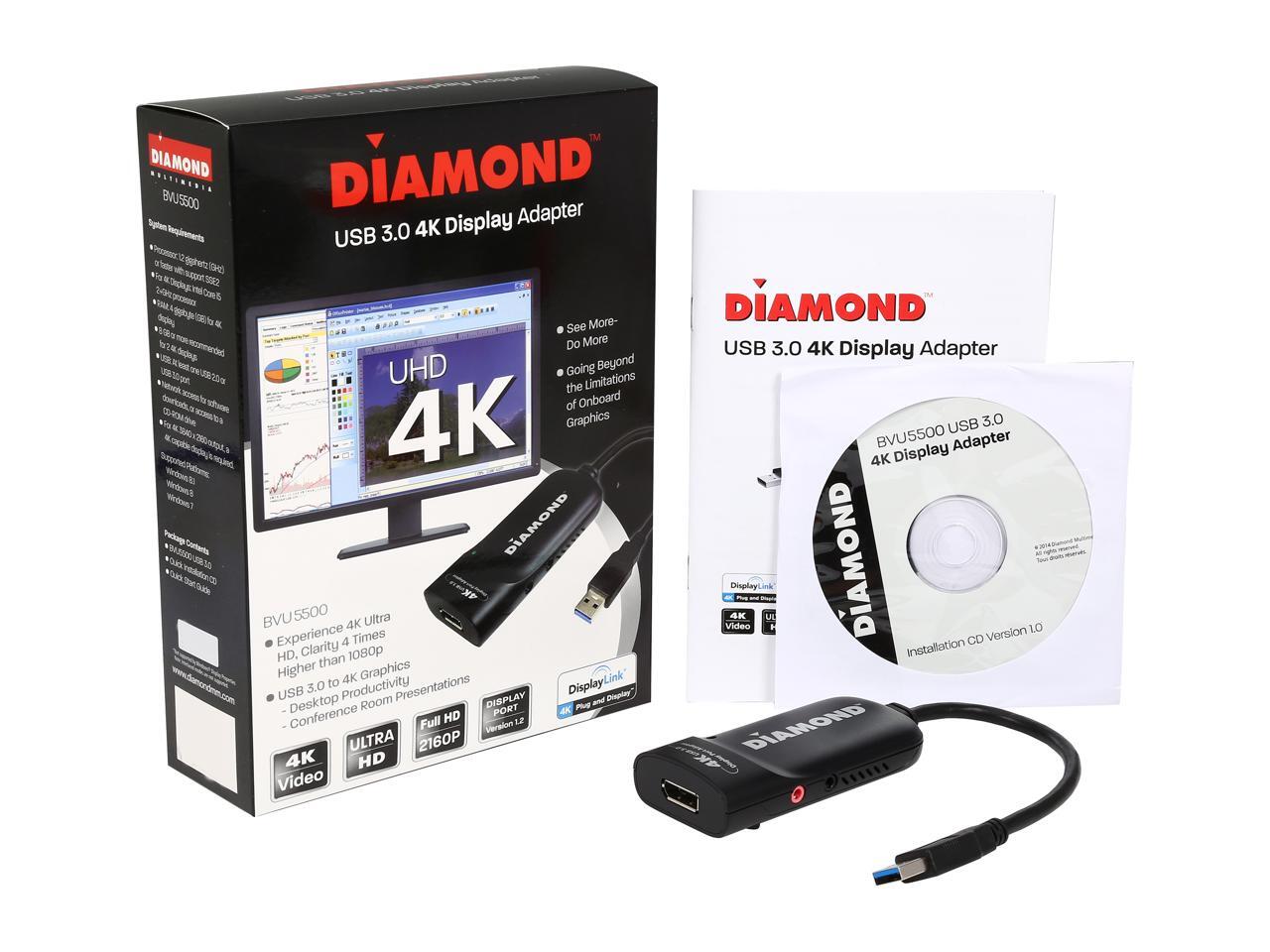 Diamond Multimedia BVU5500 UGA USB 3.0/2.0 to Ultra HD 4K 3840 x 2160 (DisplayLink DL-5500 Chipset) Display Port
