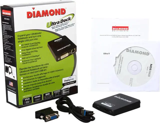 Diamond Multimedia MDS3900 USB 3.0/2.0 to HDMI/DVI Mini Ultra Dock, Dual Head Multiple Display Monitors up to 2560 x 1600