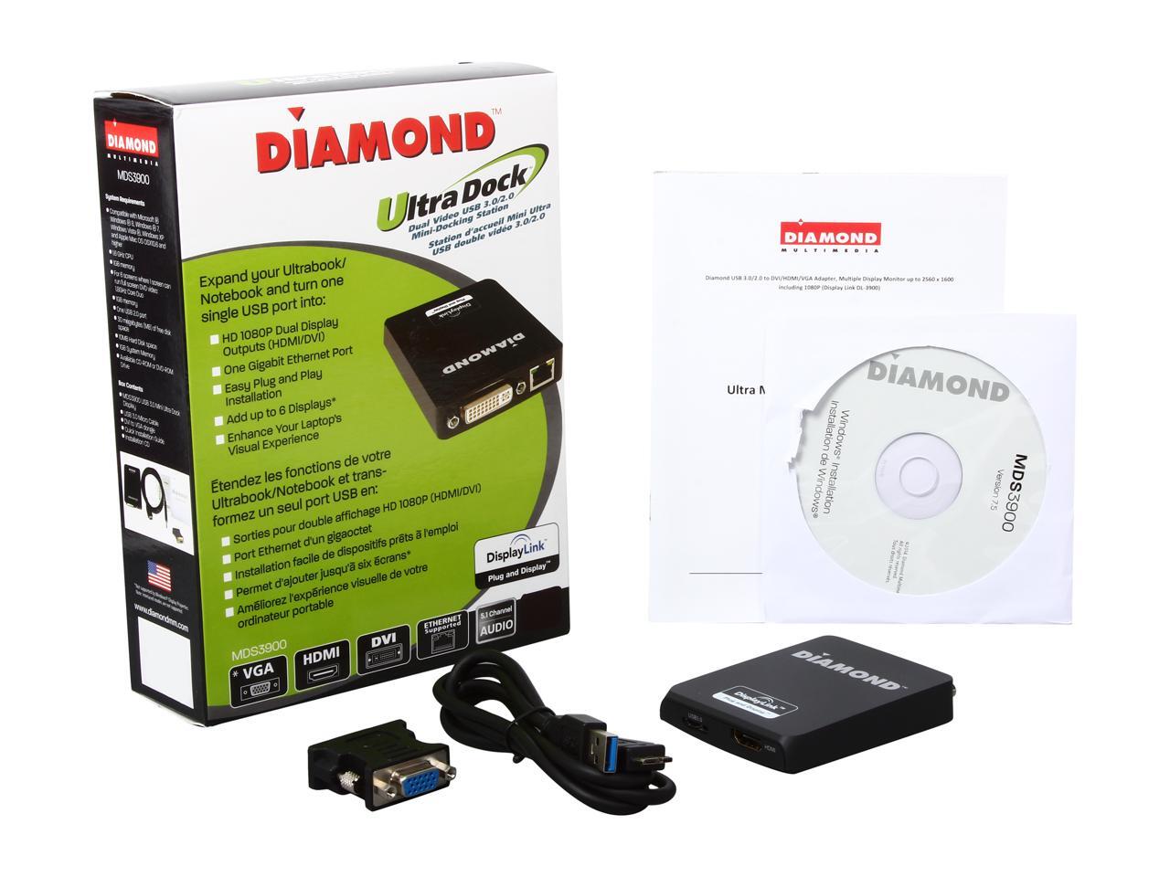 Diamond Multimedia MDS3900 USB 3.0/2.0 to HDMI/DVI Mini Ultra Dock, Dual Head Multiple Display Monitors up to 2560 x 1600