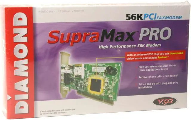| Features | Full featured data/fax Internal modem Easy PCI installation Top-rated communications and Internet access software Receive Phone Calls While Online Increase Upload Speed Complete Internet & Fax Solution |