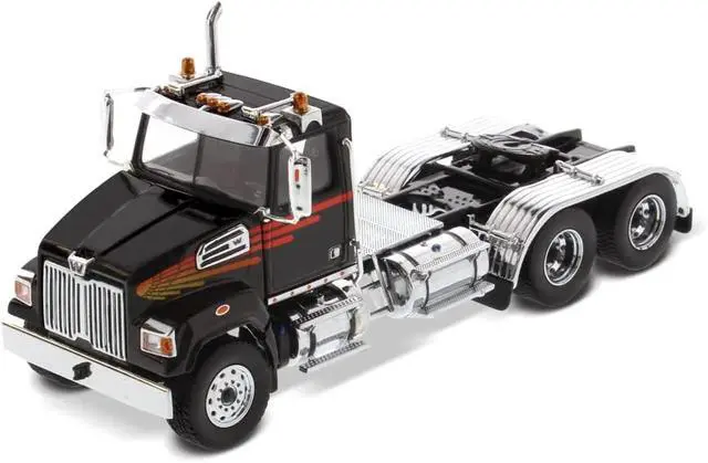 Brand new 1/50 scale diecast model of Western Star 4700 SF Tandem Day Cab Tractor Metallic Black die cast model by Diecast Masters.