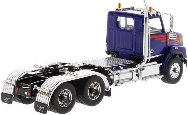 Brand new 1/50 scale diecast model of Western Star 4700 SB Tandem Day Cab Tractor Blue die cast model by Diecast Masters.