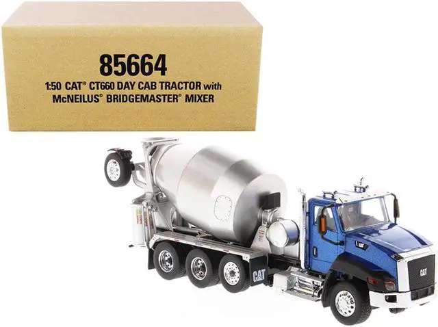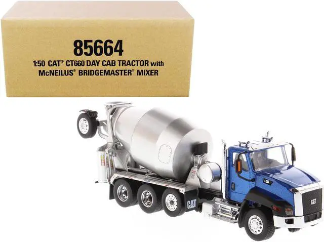 Brand new 1/50 scale diecast model of CAT Caterpillar CT660 Day Cab Tractor with McNeilus Concrete Mixer Truck Blue Metallic die cast model by Diecast Masters.