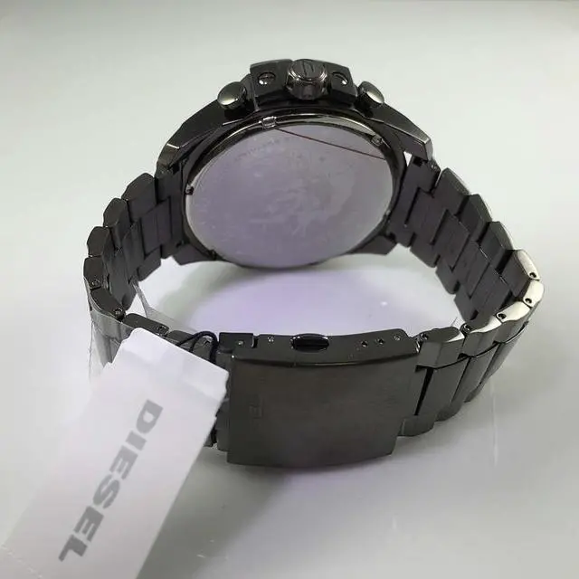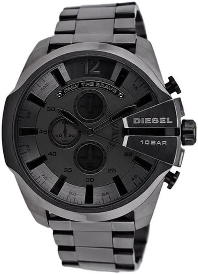 A grey stainless steel case on a matching bracelet defines the rugged and handsome style of this Diesel timepiece for men. This watch has a grey dial with matching hands and stick hour markers complete with three subdials.