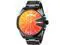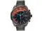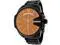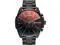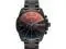 Black ion-plated stainless steel case with a black ion-plated stainless steel bracelet. Fixed black ion-plated bezel. Brown dial with skeleton hands and index hour markers. Minute markers around the outer rim. Dial Type: Analog. Chronograph - three sub-dials displaying: 60 second, 60 minute and 1/10th of a second. Quartz movement. Scratch resistant mineral crystal. Solid case back. Case dimensions: 59 mm x 51 mm. Case thickness: 12 mm. Rectangle case shape. Band width: 26 mm. Deployment clasp. Water resistant at 100 meters / 330 feet. Functions: hour, minute, second, date, chronograph. Dress watch style. Diesel Mega Chief Black Ion-plated Stainless Steel Mens Watch DZ4318.