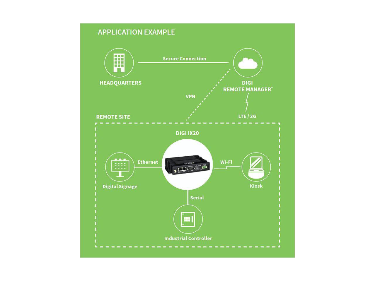 Digi IX20 LTE Cat 7 North America, (2) Ethernet, DB-9 RS-232