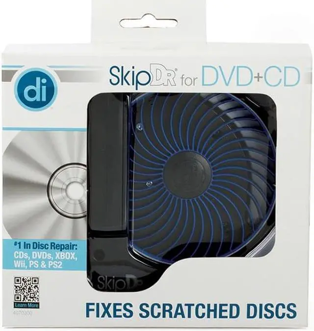 SkipDr for DVD & CD Disc Repair + Cleaning System is recognized throughout the industry as the smartest solution to repairing and cleaning discs. The patented FlexiWheel, with its unique microfrictional surface, uniformly repairs damaged discs without losing data.