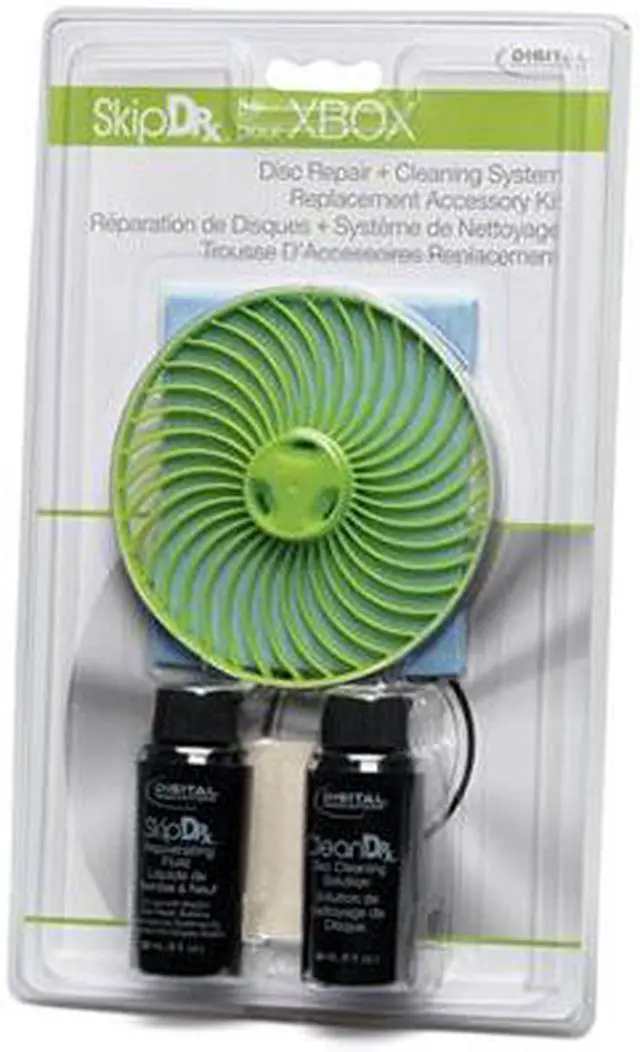 The replacement accessory kit is for use with the SkipDr for XBOX Disc Repair Cleaning System, the #1 Disc Repair System that fixes scratches that cause a disc to skip, freeze, and fail to play.