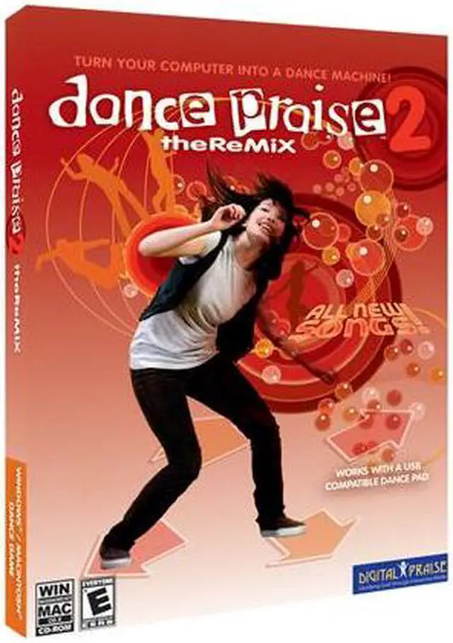 | Features | Customizable play lists - Select your favorite tunes from the games or Expansion Packs and name the list for future access. Continuous play - Dance for as long as you wish without stopping to select the songs. Game unlocks - Of the 52 songs, 10 are "locked". To unlock, you simply dance through songs at the hard level. Different backgrounds -Select the background you prefer from a wide range of colors and styles. Improved exercise mode - Record you progress as you dance off those unwanted pounds! Dance Praise2 -the ReMix tracks time, calories, and weight lost. Sign in and create a profile for each player - With custom sign-in Dance Praise 2 -the ReMix will recognize who is playing. It will record your highest score per song per level. More dance steps - Each song includes 4 choreographed dances (one per level) and hundreds of computer-generated dances, providing non-stop variety for the active dancer. High score per song per level - The scoring is now more comprehensive and will record the highest score per song per level. Connect up to 4 pads at once - Now everyone in the family can get in on the fun! 4th, super-easy level - This level allows younger kids to catch on right away. It's also good for players who need a ‚tutorial mode‚ to get used to dancing on the pads. Arcade-style game - "DanceTris", the new "tetris"-style dance pad game gives you a new way to play on your dance pad. |