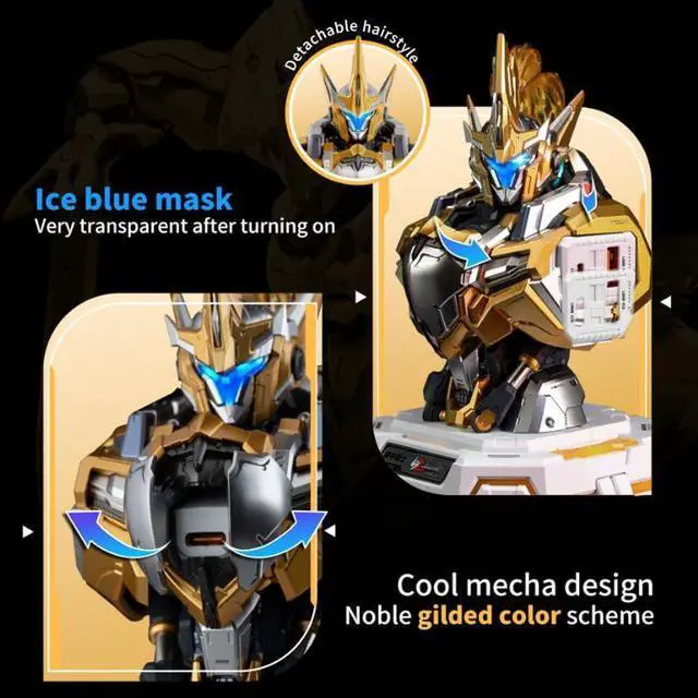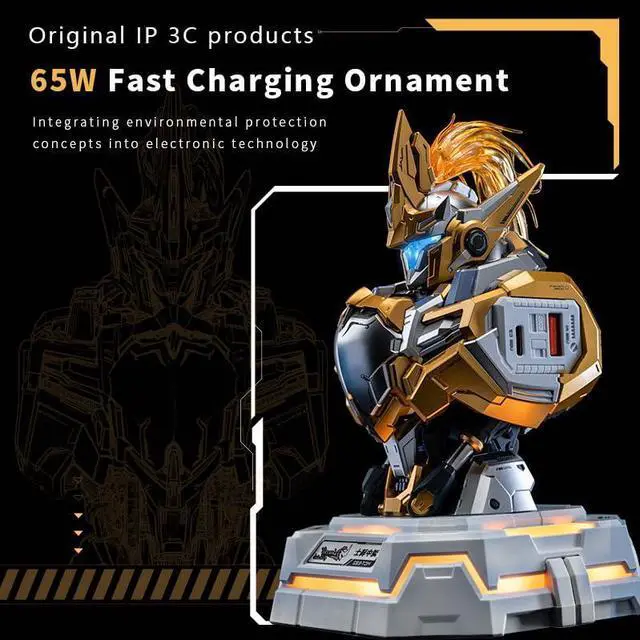 Product Description Knight of the Lake Bust Charging Hub Transform your workspace with this fusion of cutting-edge tech and anime artistry! Inspired by the legendary "Knight of the Lake" mecha from Ancestor Effect, this charging hub combines a 32W fast-charging system with intricate design elements: Dynamic Aesthetics: The bust features a posable head, cockpit-opening mechanism, and interchangeable hairstyle effects, recreating iconic battle-ready moments. Smart Charging: 5 high-speed ports (3x Type-C + 2x USB) deliver optimized power distribution for multiple devices simultaneously. LED Ambiance: Customizable RGB lighting enhances both functionality and atmosphere, perfect for late-night gaming or work sessions. Premium Build: Gold-plated finish, 16cm stature, and a weighted anti-slip base ensure stability and visual impact. Specifications: Power: 32W (Compatible with PD/QC protocols) Ports: 3x Type-C (18W Max Each) + 2x USB (12W Max Each) Dimensions: 6.3" H (with base) | Weight: 1.1 lbs Certifications: 3C Safety Certified Note: Handle with care to preserve the painted surface. Avoid sharp objects.