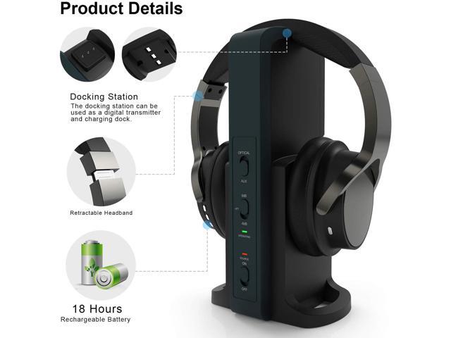 Wireless Headphones for TV Watching with 2.4G Digital RF Transmitter Charging Dock, Hi-Fi Over-Ear Cordless Headset with Optical/RCA/3.5MM Ports, for Watching Home Television Game Computer
