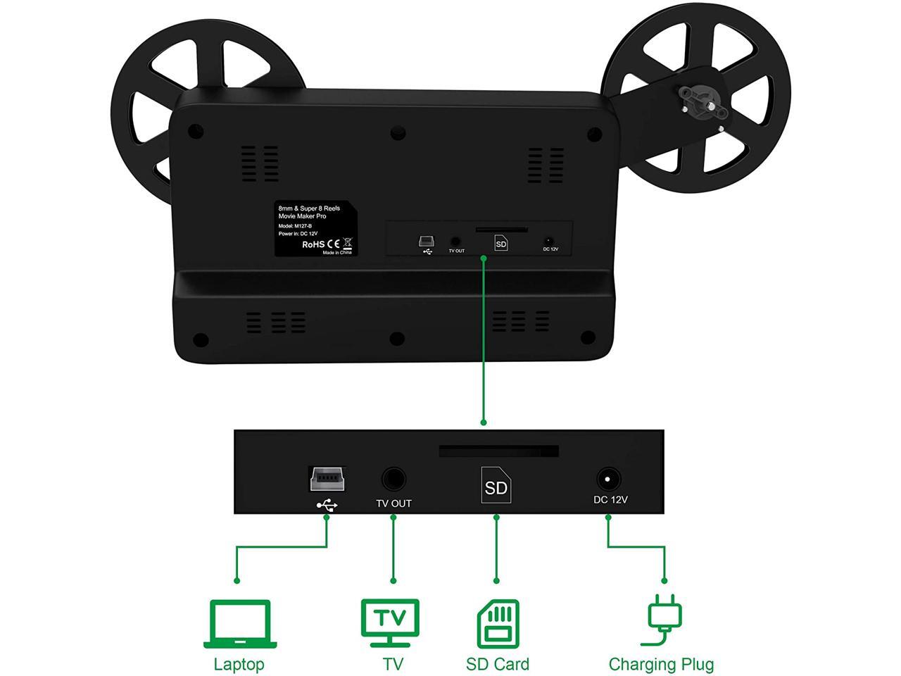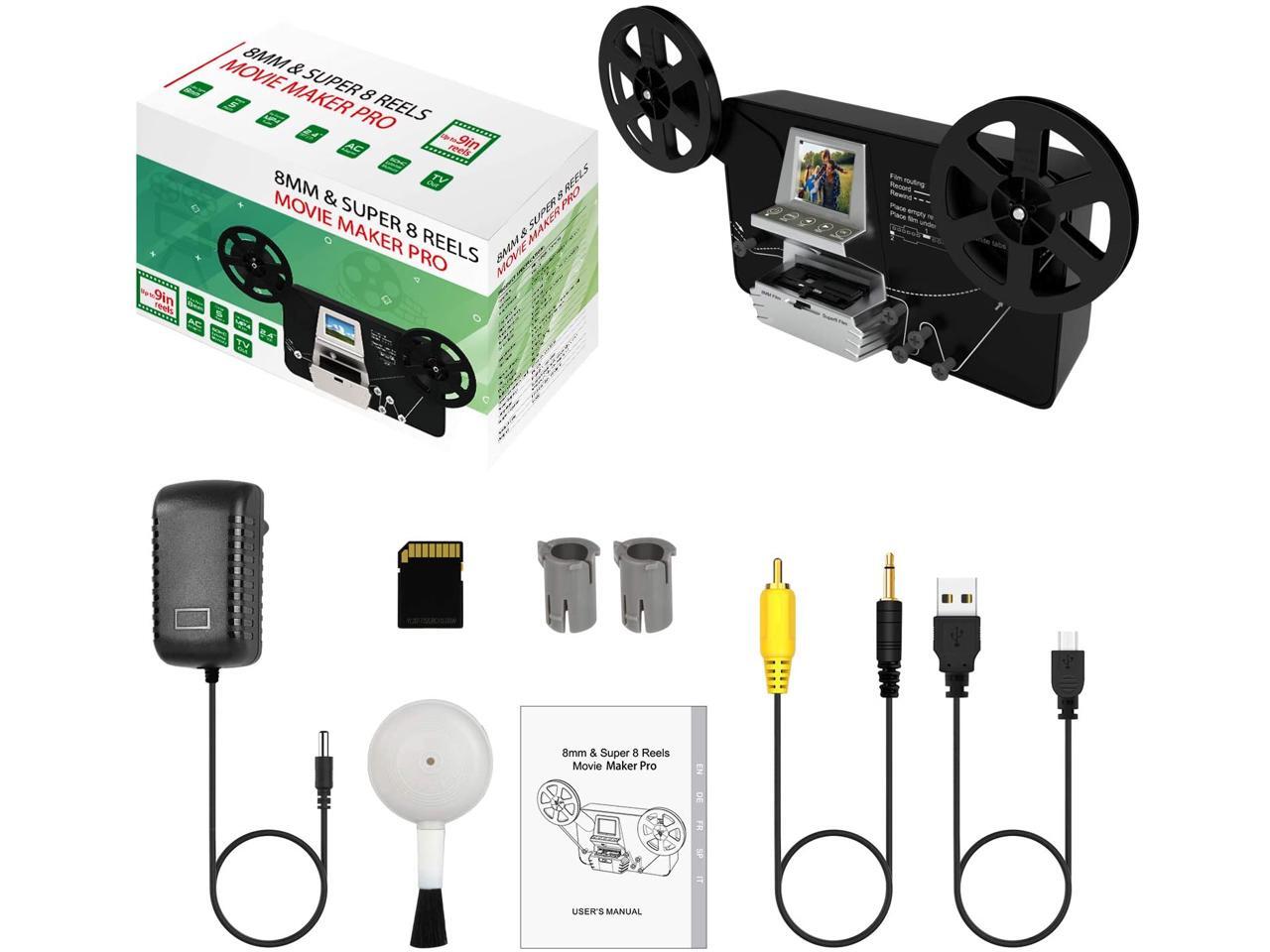 8mm & Super 8 Reels to Digital MovieMaker Film Sanner Converter, Pro Film Digitizer Machine with 2.4" LCD, Convert 3 inch and 5 inch 8mm Super 8 Film reels into 1080P Digital Videos,with 32 GB SD Card