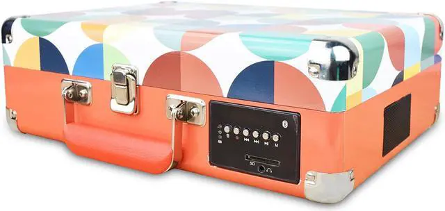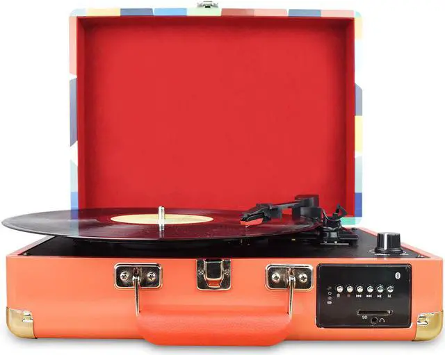 - Compatibility. Bluetooth, SD card, so you can play music on other devices with a record player, for that retro feeling.
