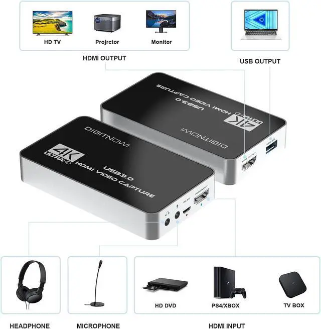 The 4k HDMI Capture Card lets you enjoy high quality of video delicate colors, clear, vivid picture quality.