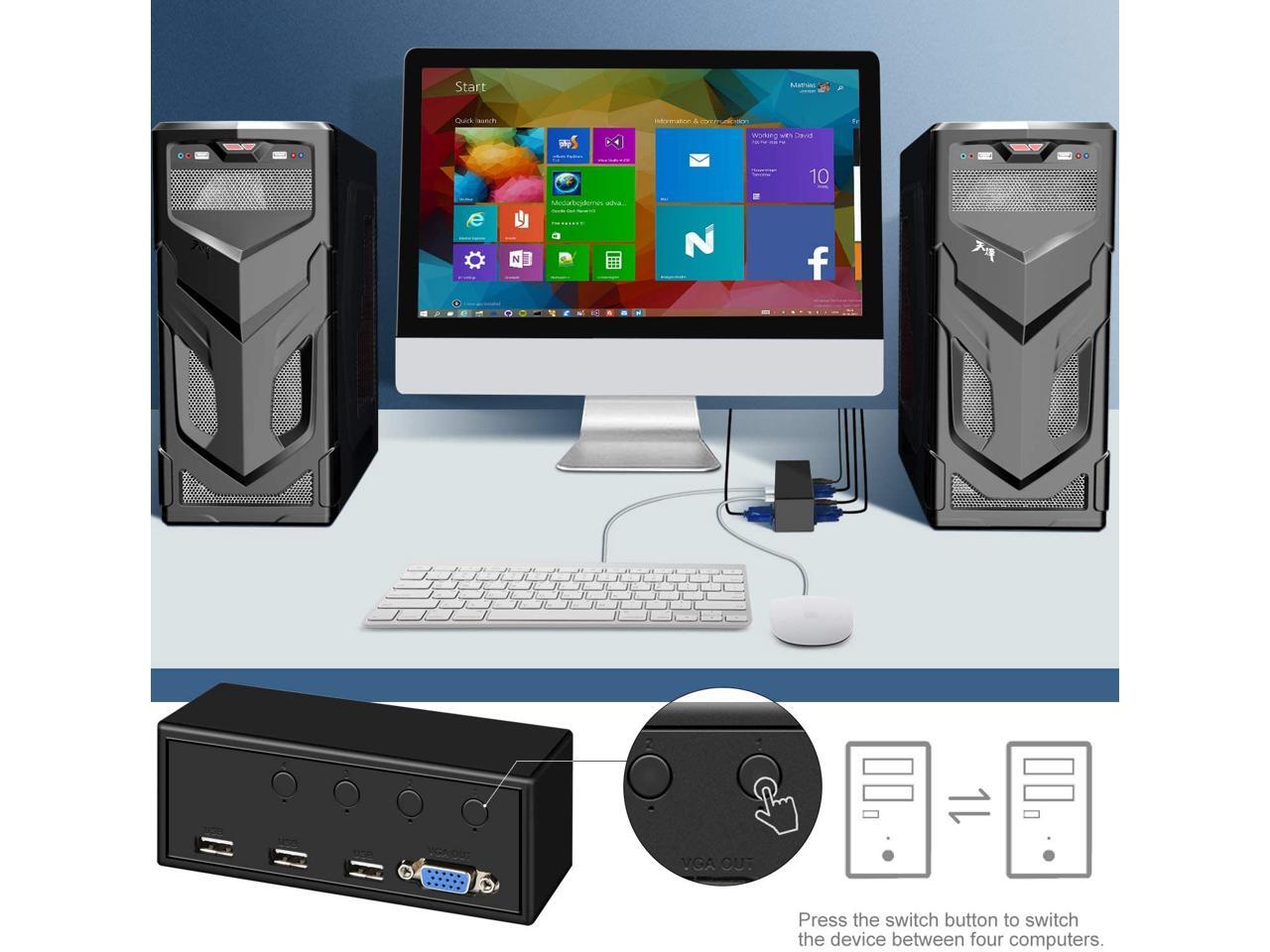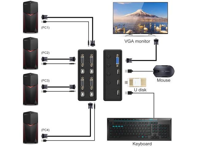 - 4 Port USB VGA KVM Switch Box: Rybozen USB VGA KVM switch is convenient for you to control multiple computers, while sharing a USB keyboard, USB mouse, printer and VGA monitor to 4 computers.