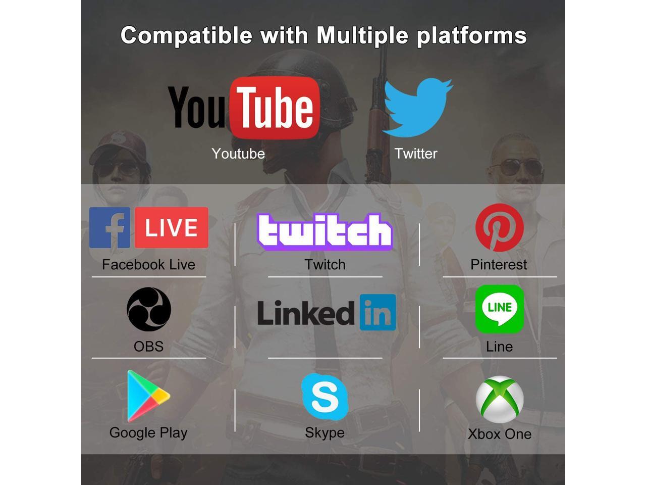 - Compatible with Multiple Systems: suitable for Windows and Mac OS. High speed USB 3.0 technology and superior low latency technology makes it easier for you to transmit live streaming to Twitch, Youtube, Facebook, Twitter, OBS, Potplayer and VLC.