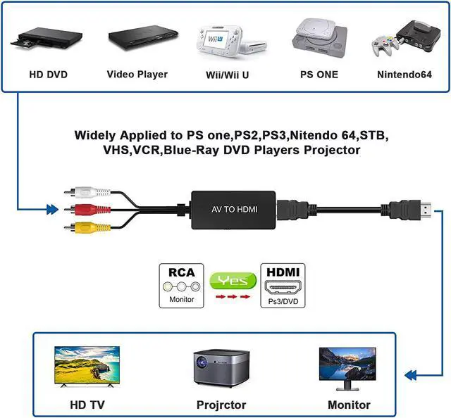 Wide Compatibility: PS One, PS2, PS3, Nintendo 64, STB, VHS, VCR, Blue-Ray DVD Players Projector