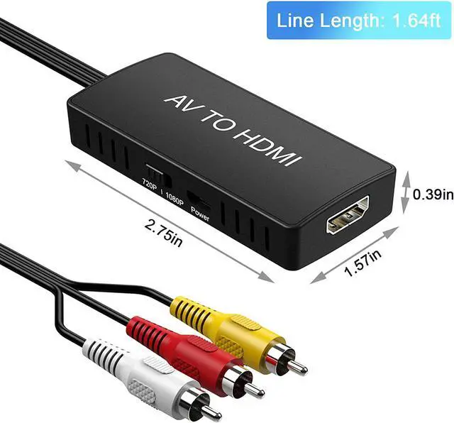 Composite to hdmi converts RCA (AV, composite, CVBS) signals into HDMI signals so you can watch your video on a modern TV with HDMI ports.