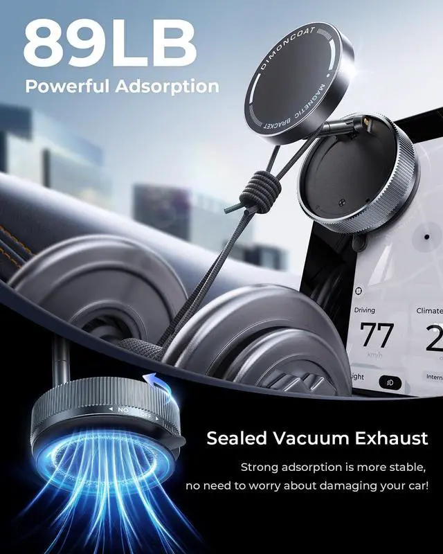 Upgraded Vacuum Magnetic Phone Holder Stand [89+LBS Strongest Suction & 24*N55 Ultra Magnetic] 360° Adjustable Car Phone Mount for MagSafe Suction Cup, Compatible with Car/Gym/Mirror for iPhone 17 16