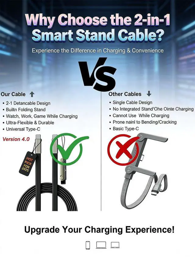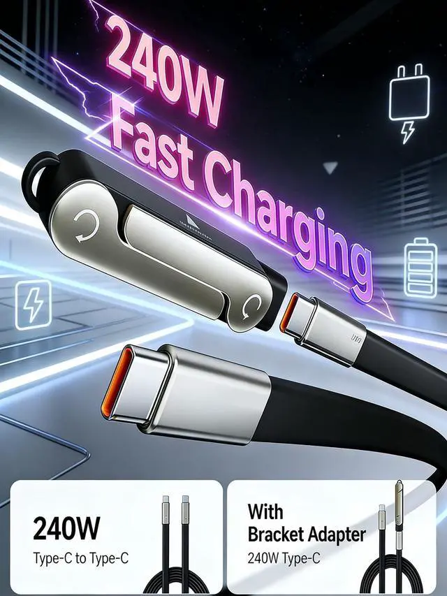 Powerful Fast Charging: Built with 240w usb c charge cable and 240 watt usb c cable technology this 240w ultra fast charging cable with stand delivers stable power and fast data transfer for phones tablets and laptops while keeping charging simple and reliable