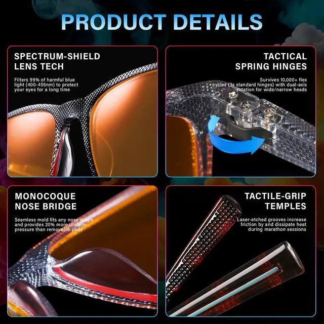 Versatile Daily CompanionWhether you're at work, relaxing at home, or immersed in a gaming session, these glasses seamlessly integrate into your daily routine.