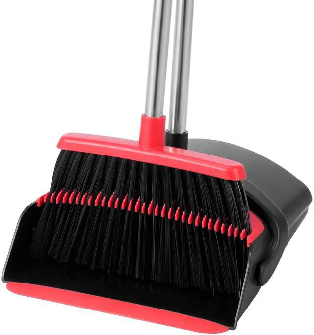 BUILT-IN DUST PAN TEETH & RUBBER LIP: The Long dustpan teeth has built-in comb teeth to easily scrape human/pet hair and trash from the broom into the dustpan without dragging by hand.The TPR rubber lip on the dustpan fits the floor seamlessly without leaving dust or debris behind, which will save you a lot of cleaning time.