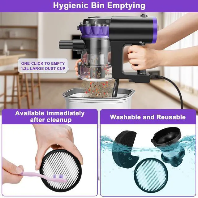Easily empty the 1.2L dust cup with a single press, keeping your hands clean and hassle-free.