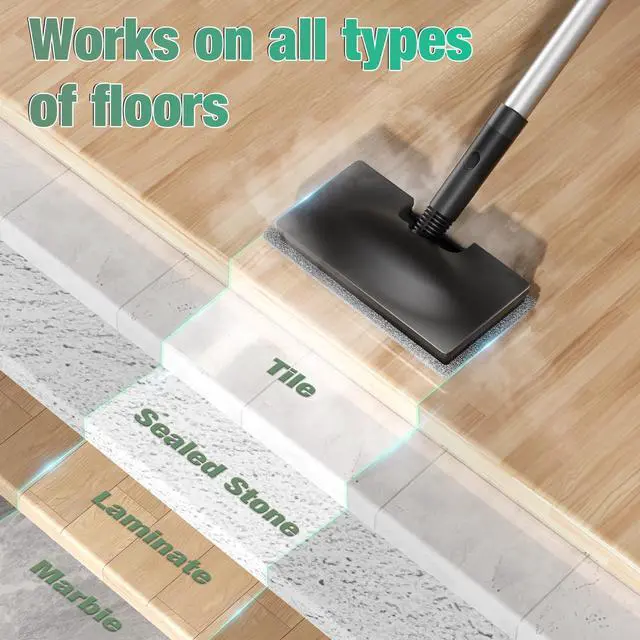 Dual-Use Steam CleanerThis versatile device functions as a powerful floor steamer and a portable handheld cleaner, offering the perfect all-in-one solution for your entire home. In seconds, it transforms from a steam mop for hardwood floors that effortlessly cleans hardwood and tile into a lightweight steamer with multi-purpose cleaning heads. Tackle every surface imaginable: tiles, hardwood floors, windows, shower walls, furniture, clothing, and even your car.